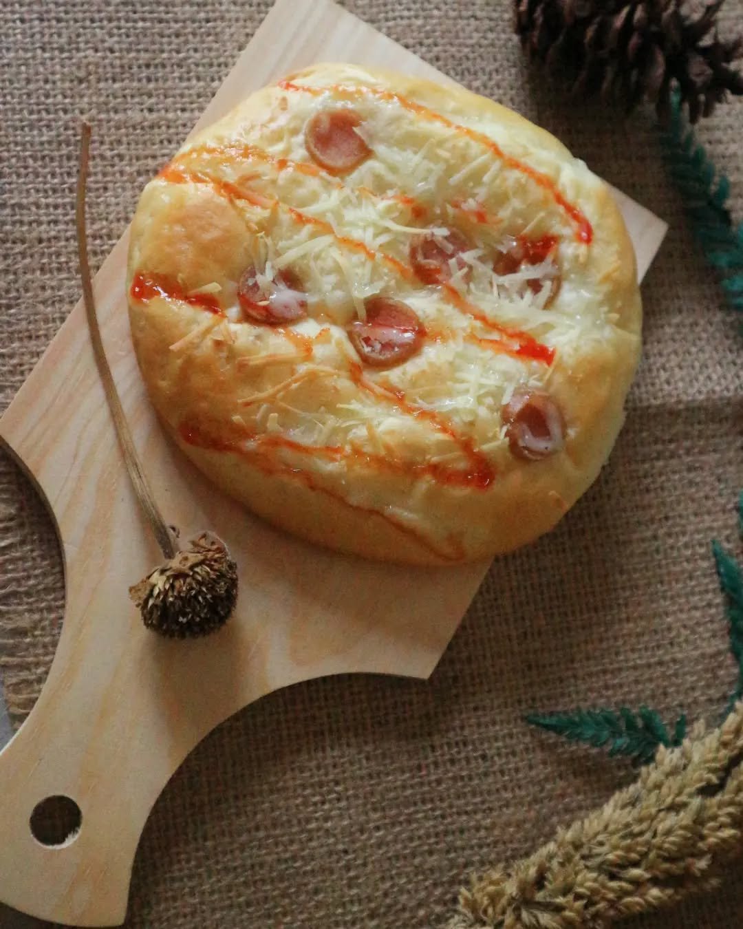 ✔ Roti lembut dengan topping sosis, saus pizza, dan keju